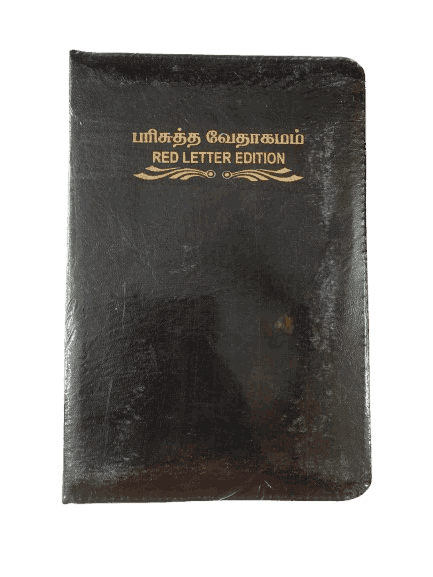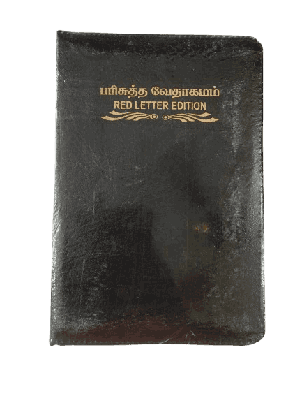 Crown Size Tamil Bible with Red Letter Edition and index in elegant black binding.