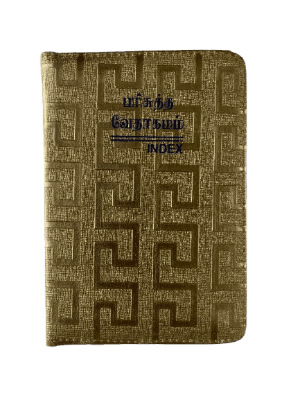 This Tamil Bible from BSI features a striking golden cover in a Pilot Size format. Designed for those who prefer compact and stylish editions, it also includes a thumb index for quick navigation through the scriptures. Its durable binding and aesthetic appeal make it a popular gift choice and a handy devotional companion.