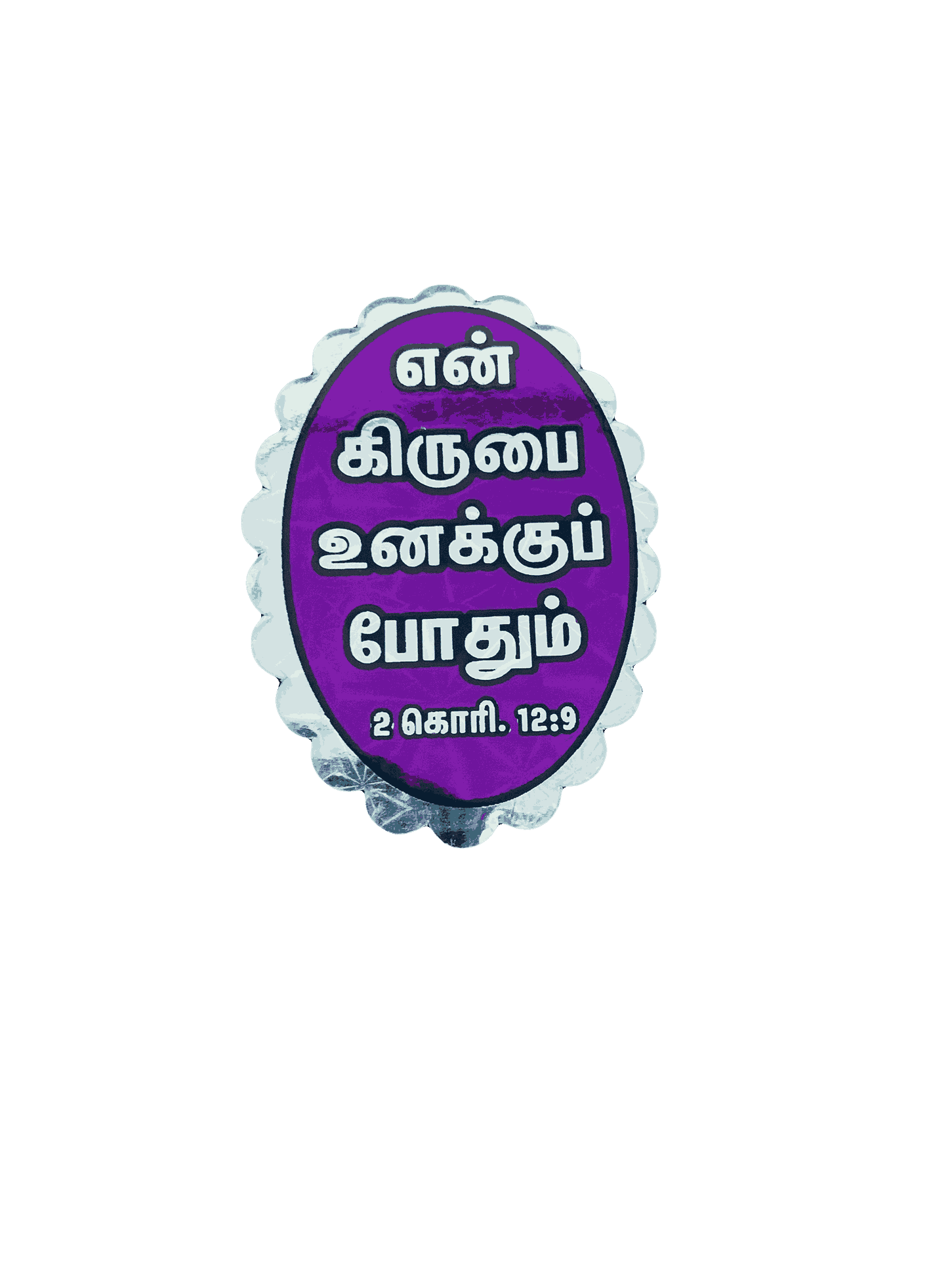 - Package Includes: 12 small oval-shaped reflective stickers with different Bible verses in Tamil (set)