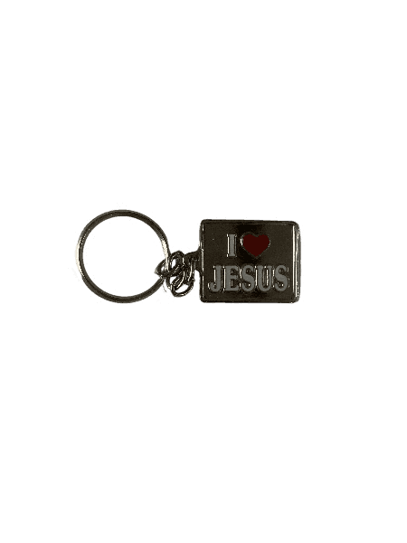 A Metal I Love Jesus Keychain, perfect for expressing your faith, featuring an engraved message that shares the love of Christ.