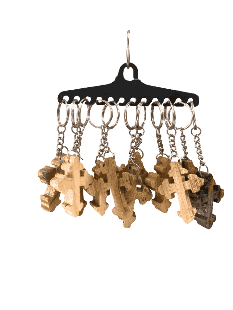 Carry your faith with the Keychains with Bible Verses – Wood Type – Cross Keychain. A beautifully crafted wooden cross keychain featuring inspiring Bible verses. Perfect for keys, bags, or gifts.