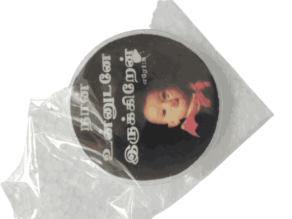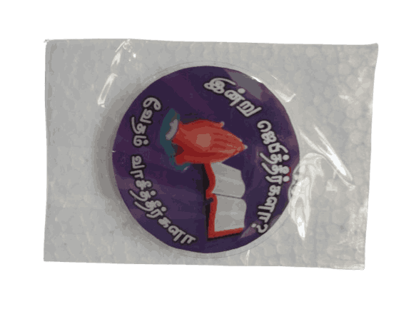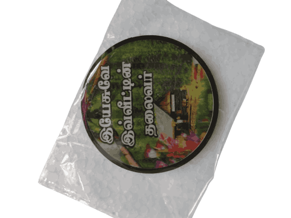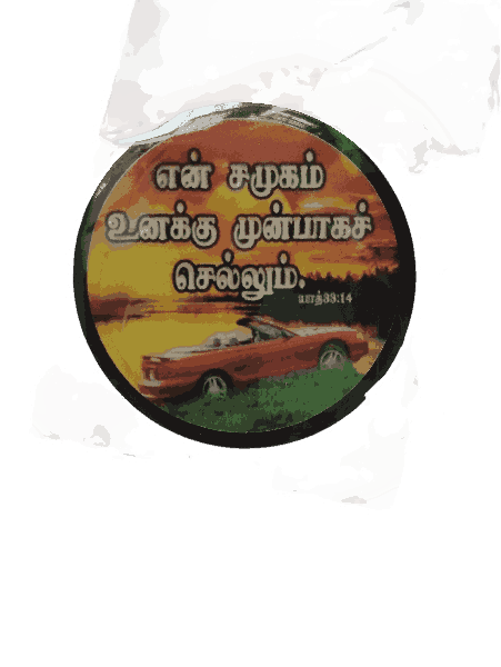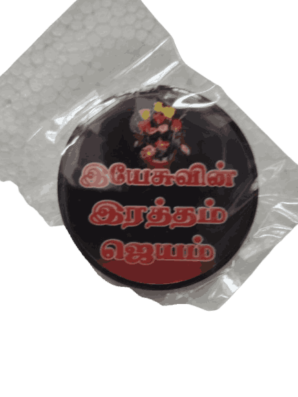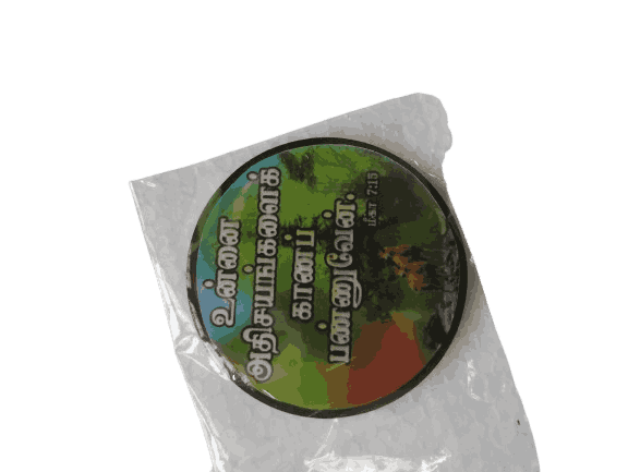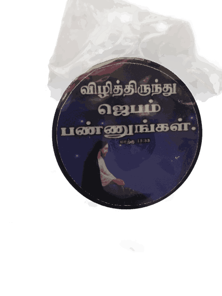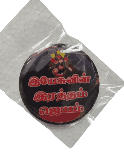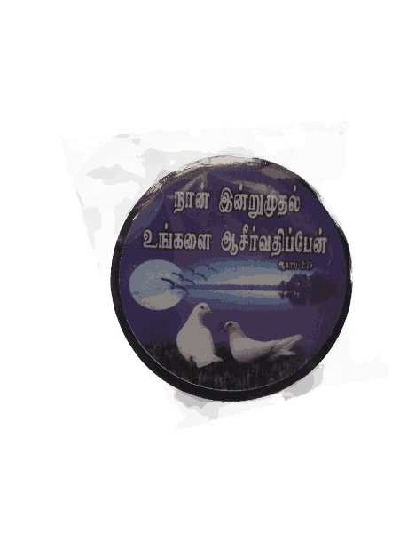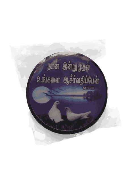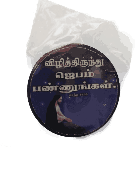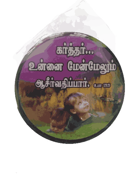 Circular Tamil Bible verse magnet – a small but powerful reminder of God’s promises.