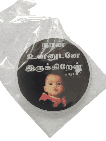 This Round Bible Verse Magnet centers your focus on God’s Word each day. Designed with an eye-catching circular shape and Tamil scripture at its heart, it’s both functional and decorative. Easily attachable to fridges or metal surfaces, it’s a great gift idea for believers of all ages.