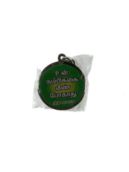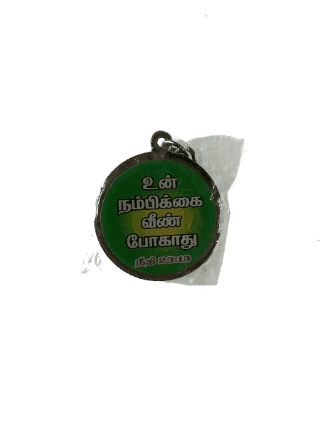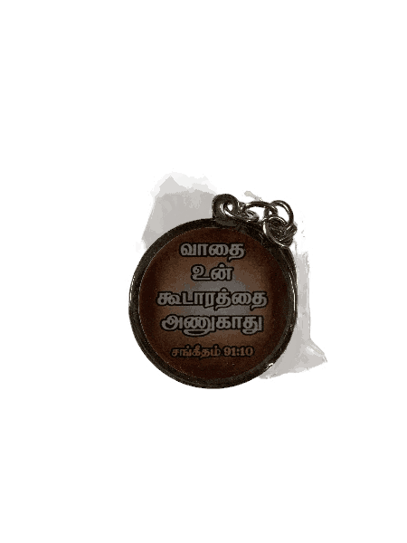 A Round Bible Verse Keychain, featuring a meaningful scripture engraving, perfect for keeping God’s word with you at all times.
