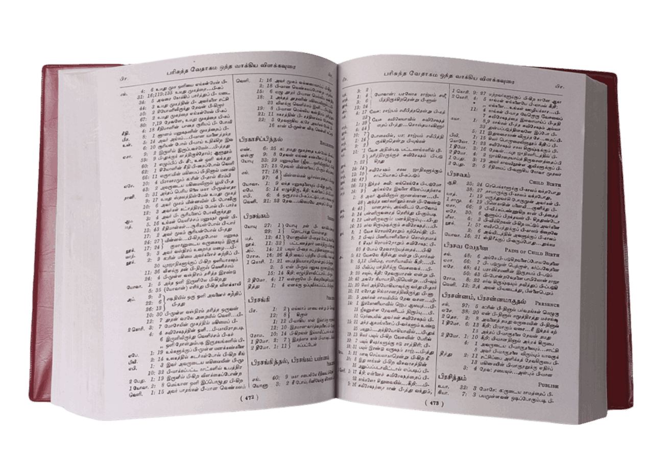 The Tamil Reference Bible – Concordance to the Tamil Bible O.V. R.N. Aaseervaatham is an essential tool for Tamil-speaking readers who wish to delve deeper into the Scriptures.