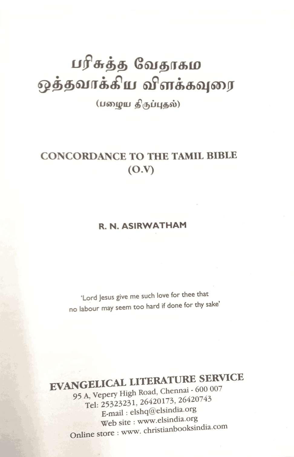 Tamil Reference Bible – Concordance to the Tamil Bible (O.V.) R.N. Aaseervaatham