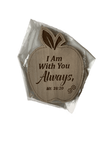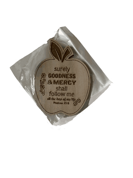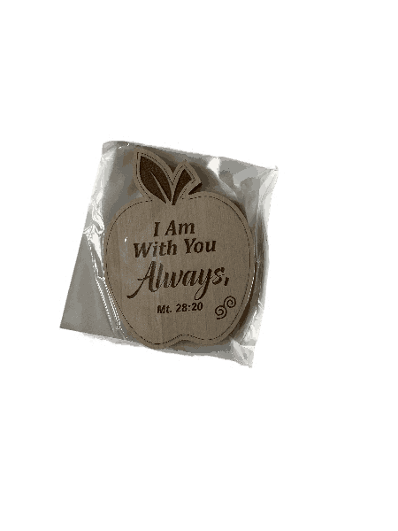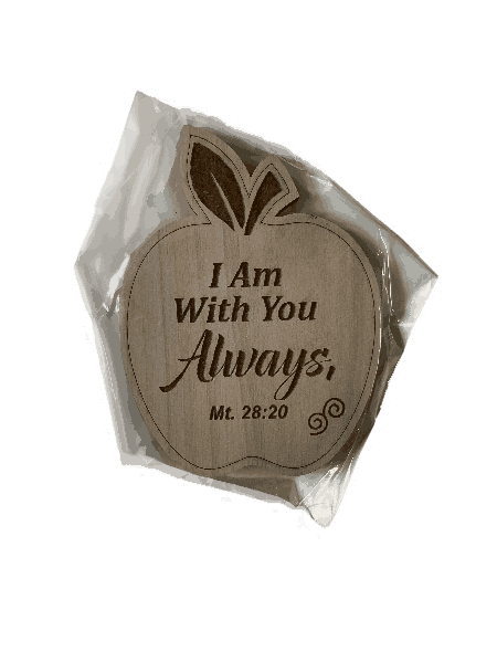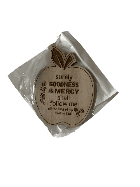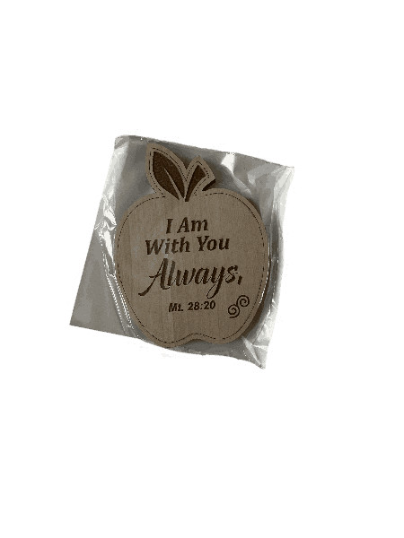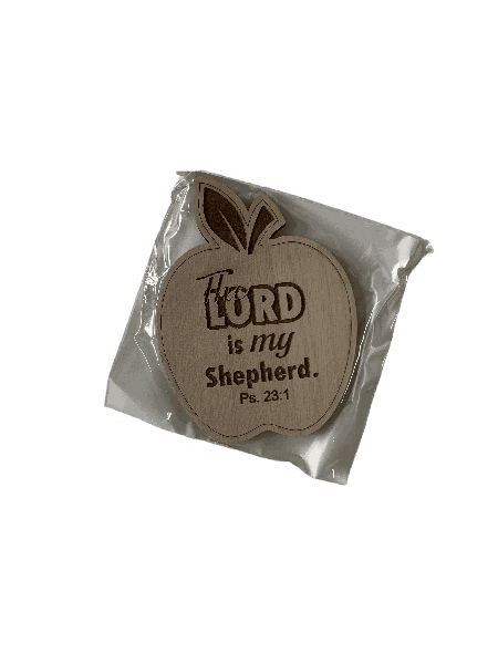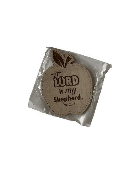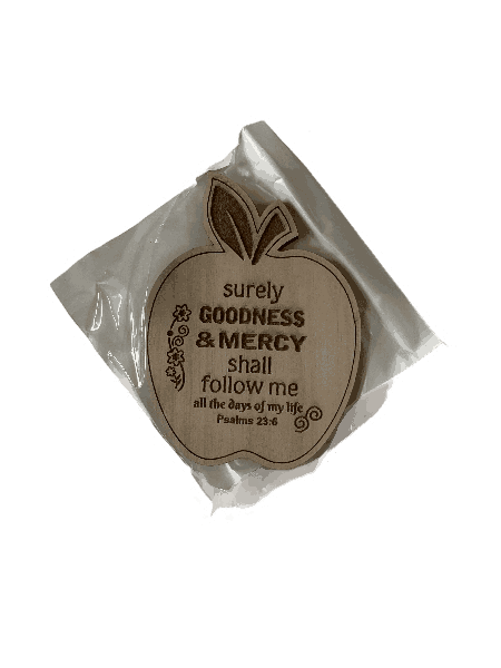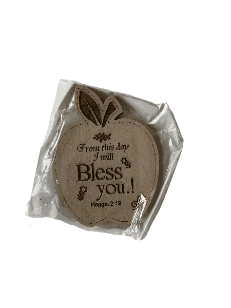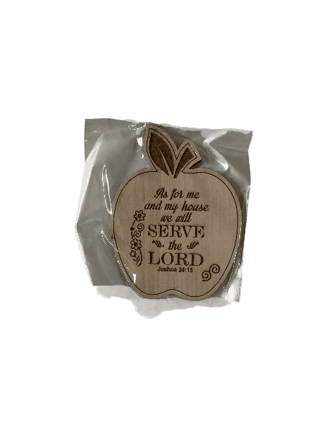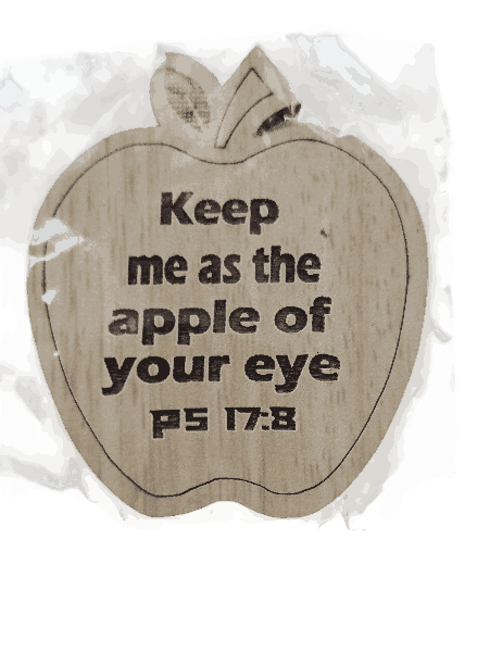 Wooden sticker in apple shape with Bible verse – cute, meaningful, and perfect for decor or gifts.