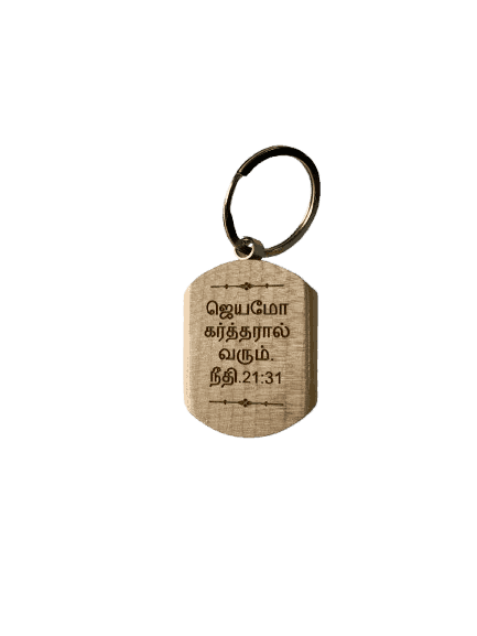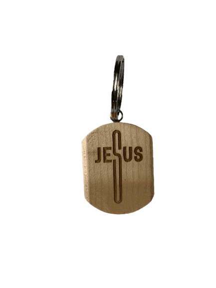 A Wooden Keychain featuring a Bible verse and the Holy Cross, perfect for daily use or gifting, offering a meaningful reminder of God’s love.